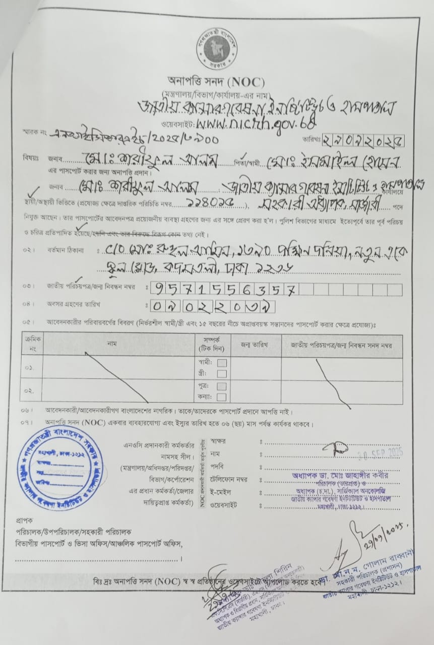 NOC (Dr. Mirza Md. Asaduzzaman)