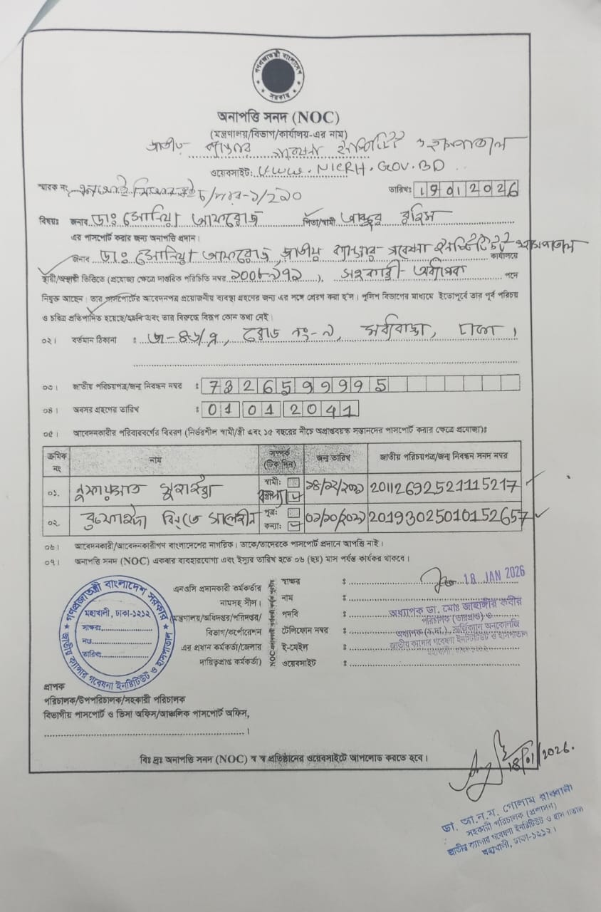 NOC of Dr Sharif Nazmunnahar |